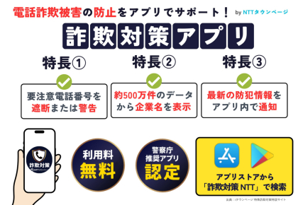 「詐欺対策 by NTTタウンページ」は警察庁の推奨認定を受けた、