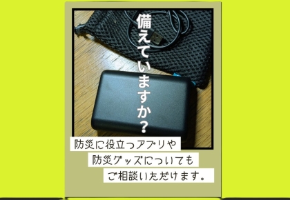 防災に役立つアプリや、モバイルバッテリーなどのグッズについても教室でご相談いただけます。
