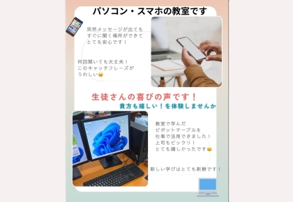 その他、パソコン・スマホ教室にご興味のある方は無料体験も実施しておりますので、