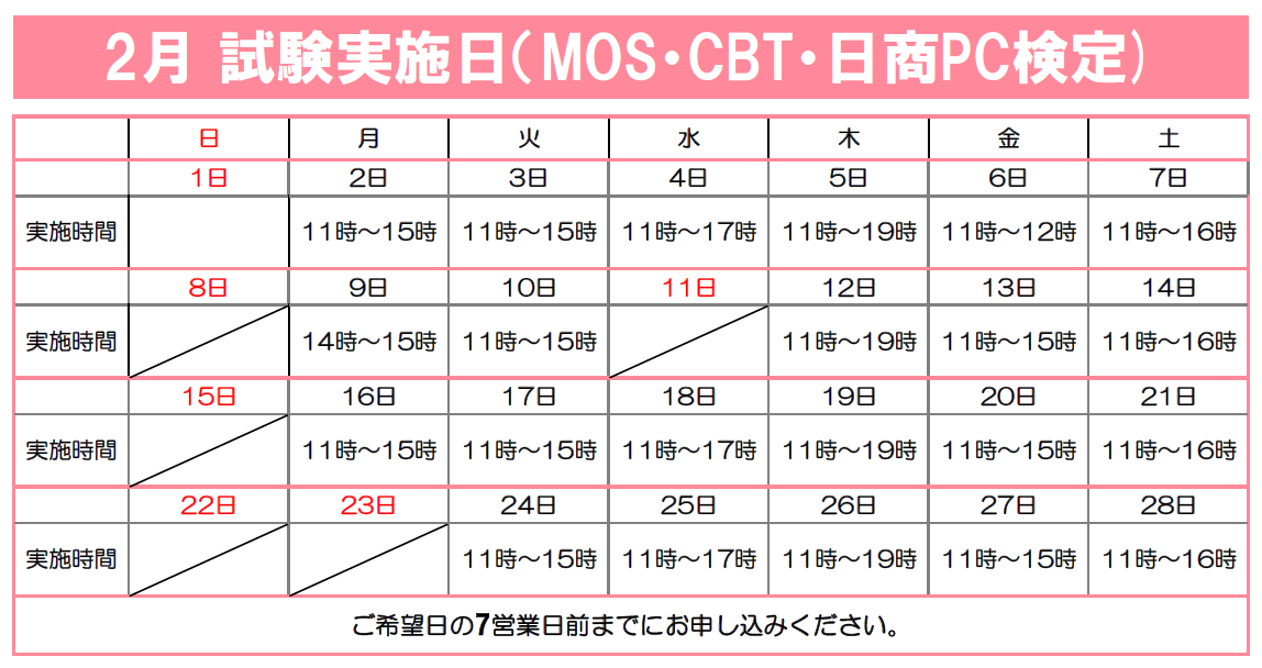 MOS・日商PC検定の受験校になっていますので、当校での受験も可能です。