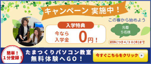 | その他リンク | Facebook たまつくりパソコン教室 Instagramたまつくりパソコン教室 |