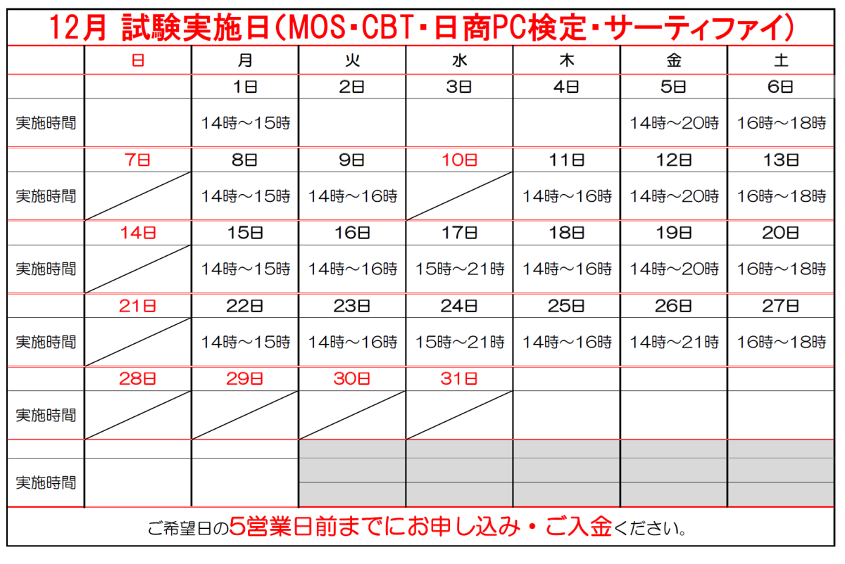 | 開校時間 | 水・金曜日/10:00〜21:00 月・火・木曜日/10:00〜16:00 土曜日/10:00~16:00 |